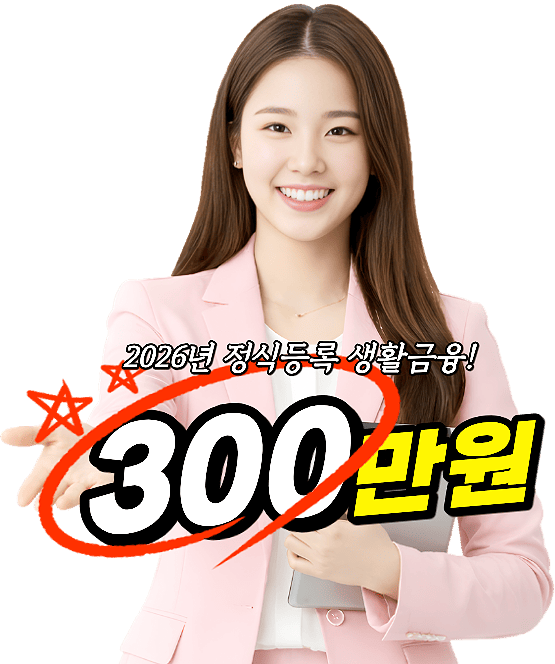 30~300만원 한도 내에서 빠른입금! 신용, 소득, 기대출, 연체 까다롭지않게! 유리하게 받으세요. 2026년 정식등록 제도권 소액대출